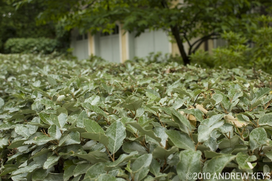 @Robert: This is Elaeagnus pungens, as far as I know. It’s pretty easy to come by in the South, though neither terribly popular or overplanted. I’ve always loved it!